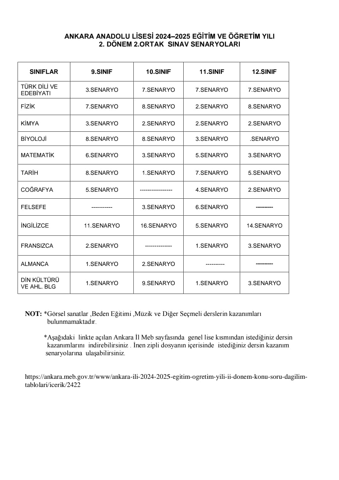 ANKARA ANADOLU LİSESİ 2024–2025 EĞİTİM VE ÖĞRETİM YILI 2. DÖNEM 2.ORTAK SINAV SENARYOLARI İÇİN TIKLAYINIZ.